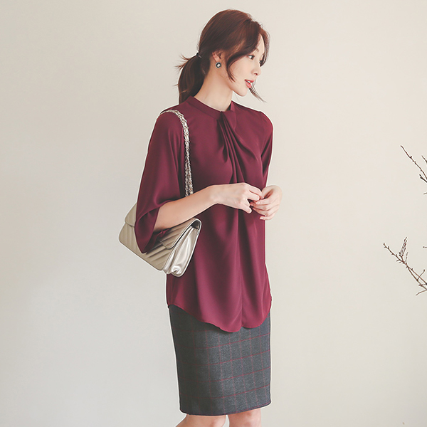 扭 披盖 半高领 罩衫