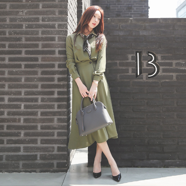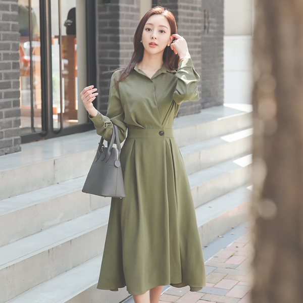 法式 细褶 Surplice 衬衫 喇叭 连衣裙