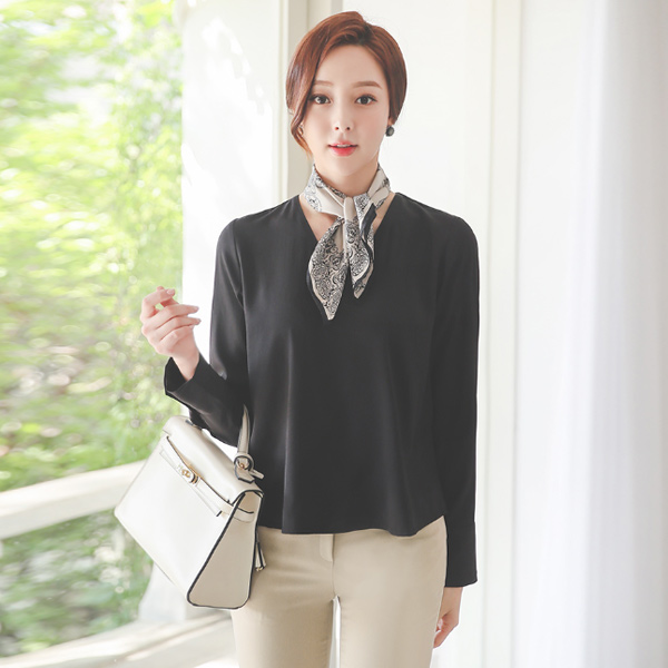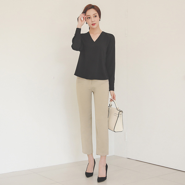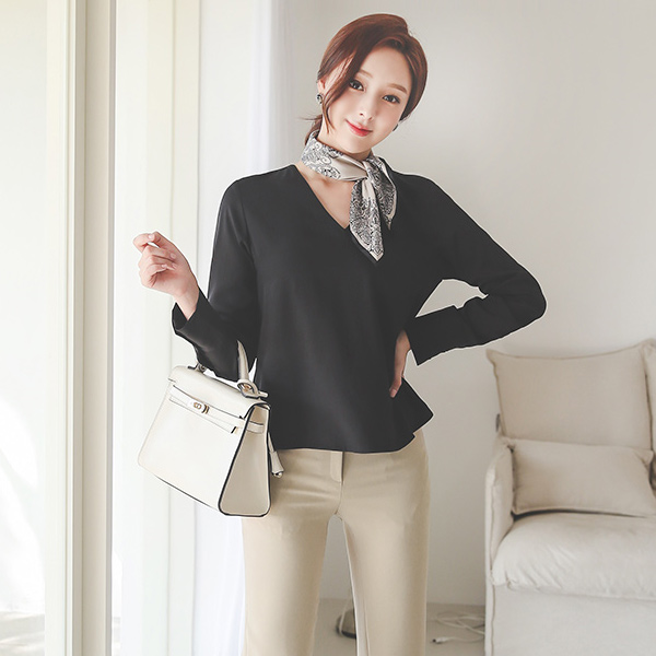 摩登 V字领 三个 扣子 袖口 罩衫