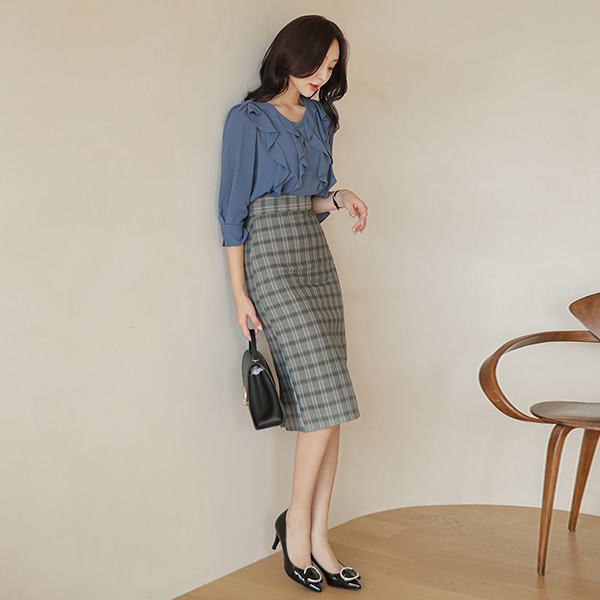 人字呢 混合 格子 H字型 中长款裙