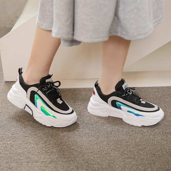 镭射 网状 厚底鞋 胶底帆布鞋
