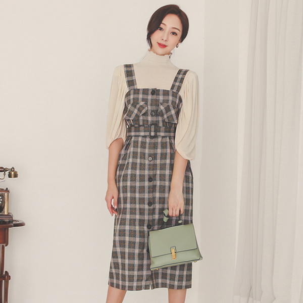 羊毛 双 翻盖风格 扣子 连衣裙