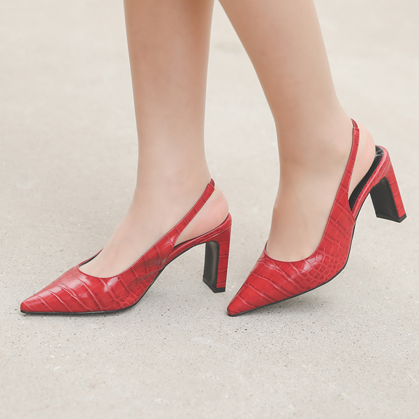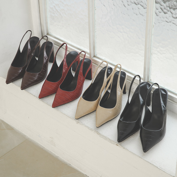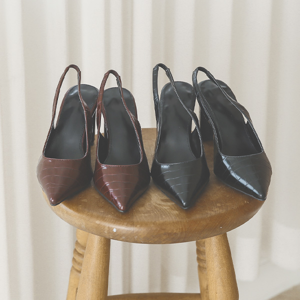 尖锐 鳄鱼纹 厚底 露跟高跟鞋
