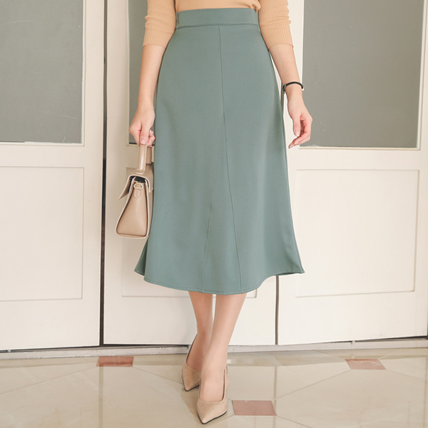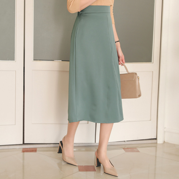 绸缎 开叉 后侧松紧带 弹力 A字型 裙子