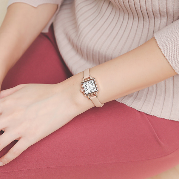 古典 牛皮 薰衣草色 手表