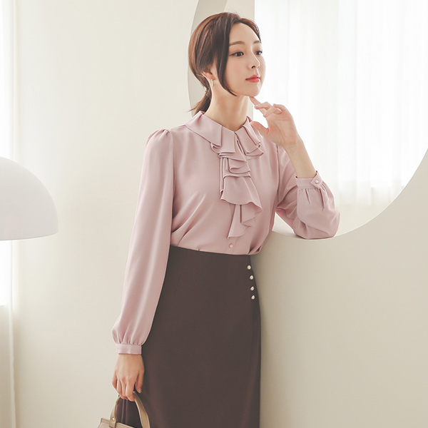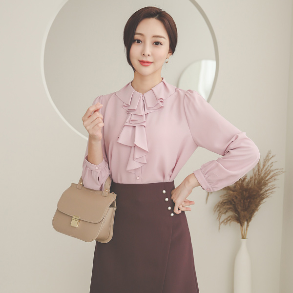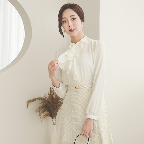 不规则 荷叶边 褶裥 领子 罩衫