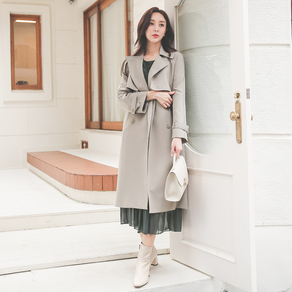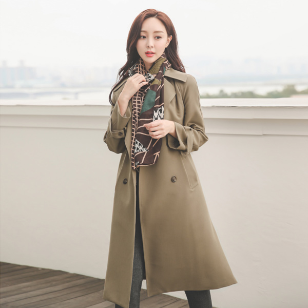 摩登 基本 插肩袖 长款 双排扣雨衣