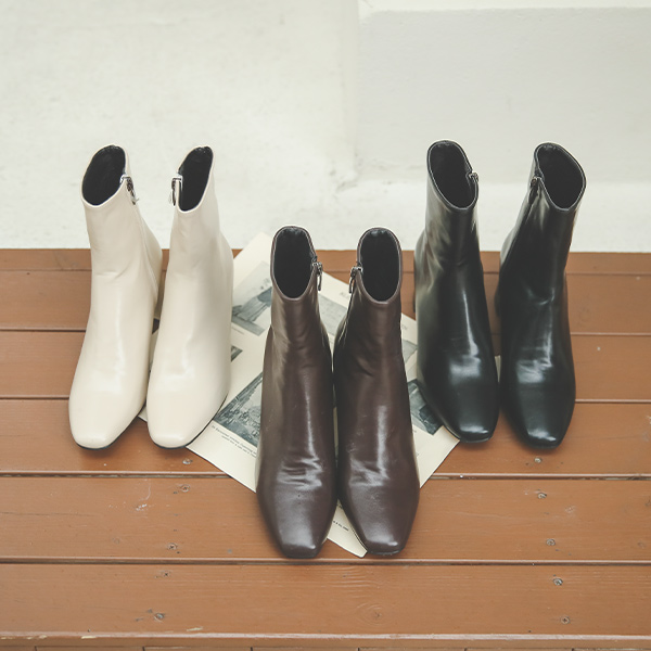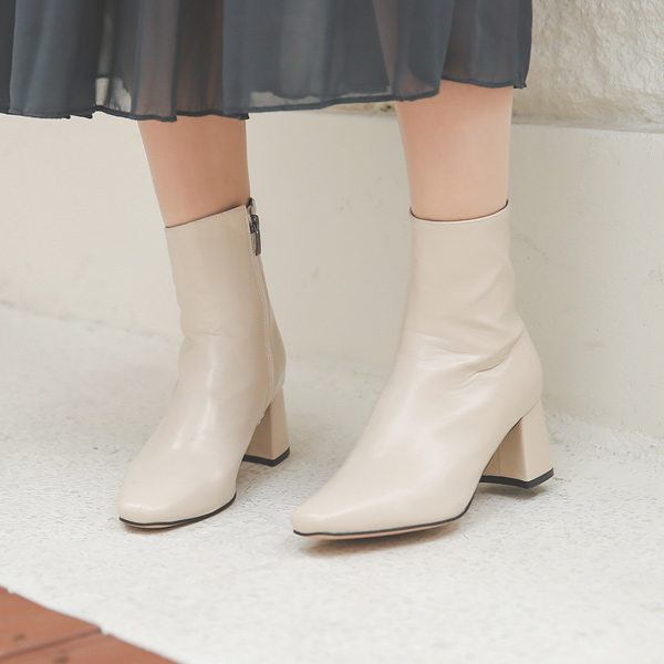 侧纽 拉链 厚底 中跟 短靴