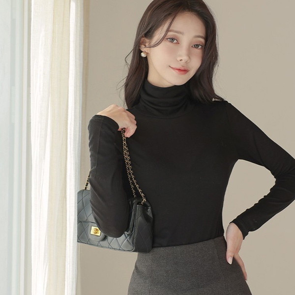 可爱 灯光 天丝 高领 T恤衫
