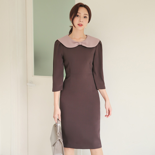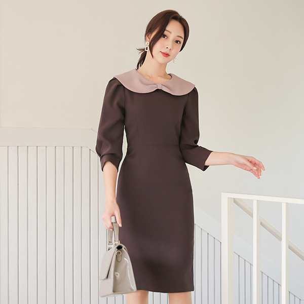 浪漫 宽松 리본카라 袖子细褶 连衣裙