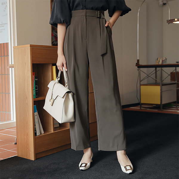 侧纽 带扣 束带 细褶 宽松 宽松长裤