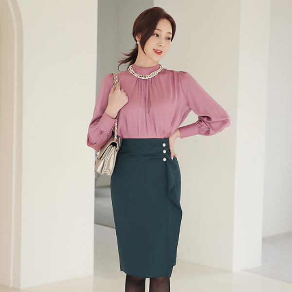 侧纽 褶皱 不规则 褶裥 珍珠 裙子