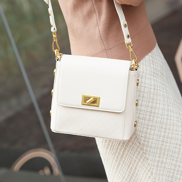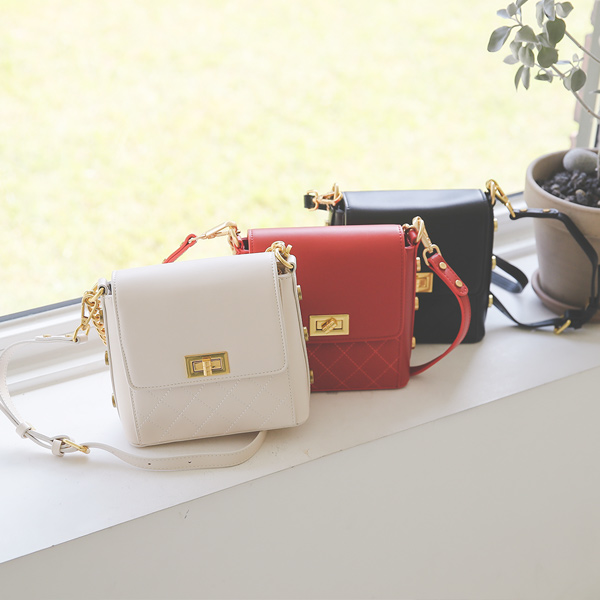 钻石 缝线 双束带 迷你 斜挎包