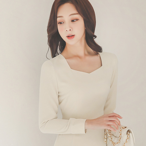 方领 后面蝴蝶结 开叉线条 连衣裙