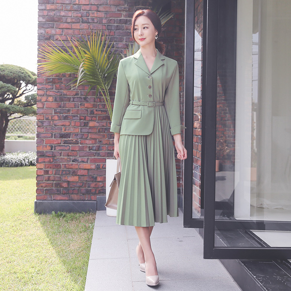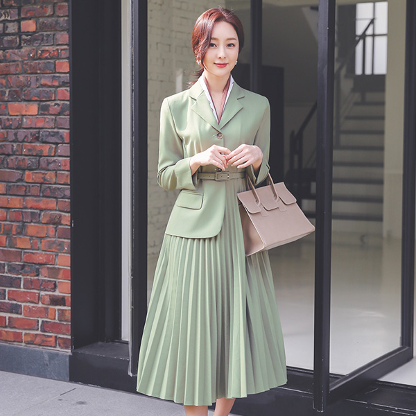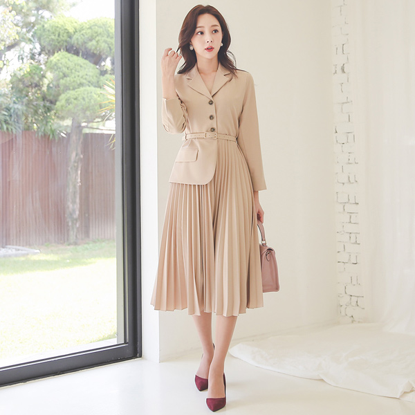 领子 不规则 夹克 褶边 长款 连衣裙