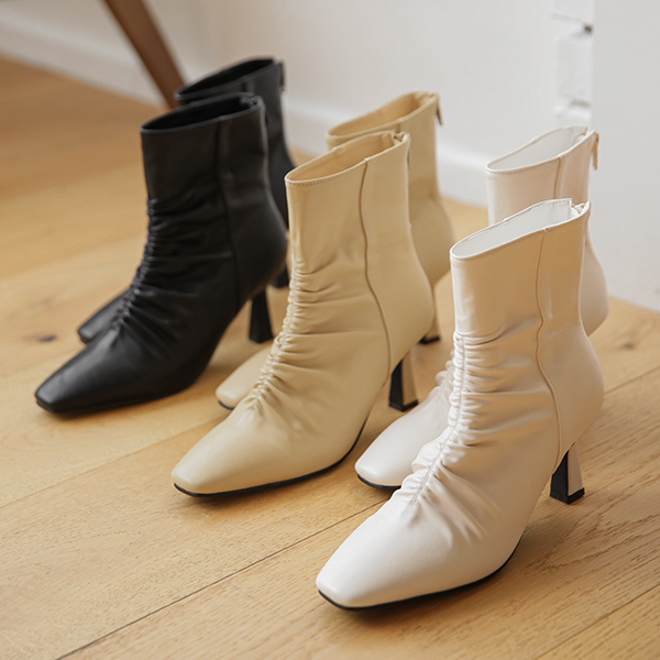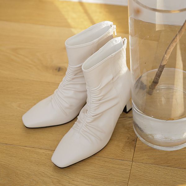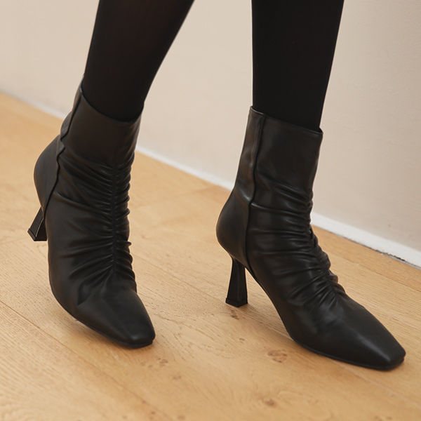 褶皱 迷你 Square Toe 短靴