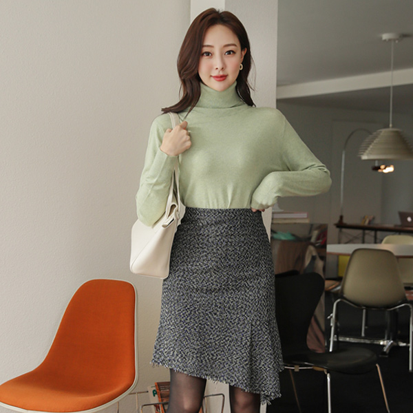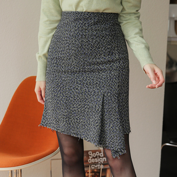 混合 流苏 粗呢 不规则 褶裥 裙子