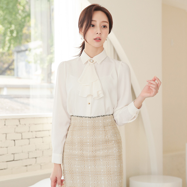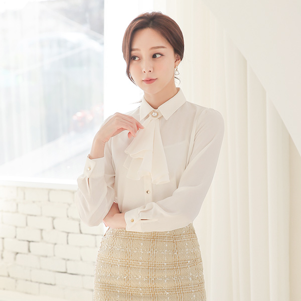 金色珍珠 褶裥 围巾 双重 罩衫