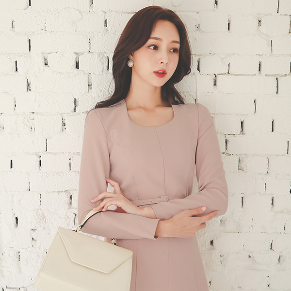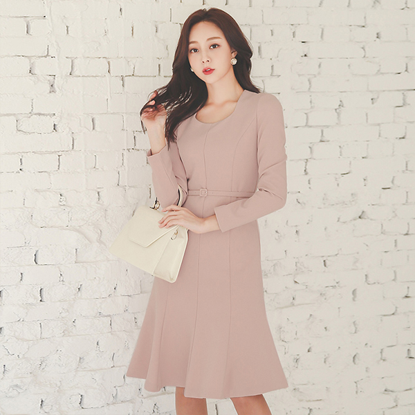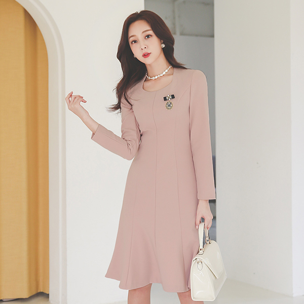 方领 开叉线条 喇叭 连衣裙