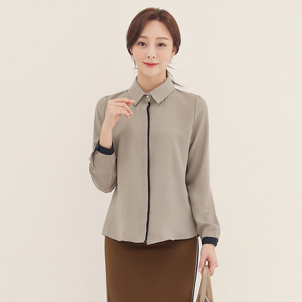领子衬衫 隐藏彩色配色 珍珠 罩衫