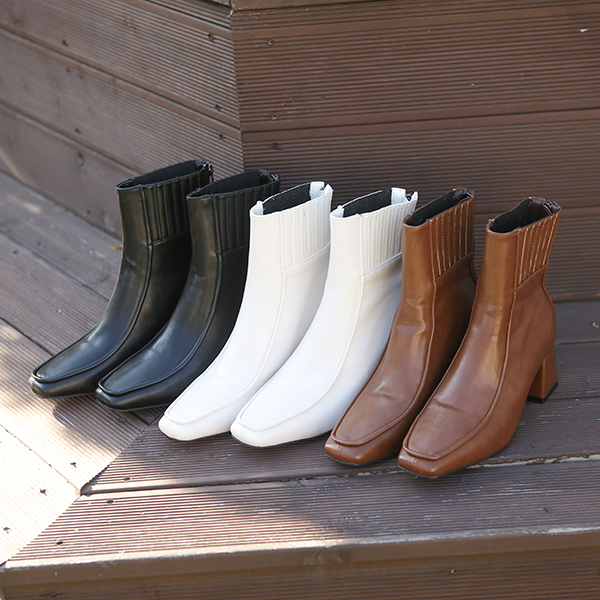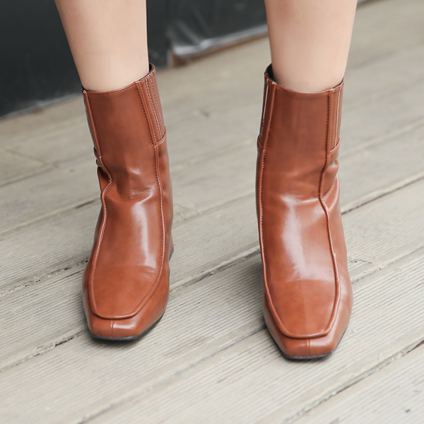侧纽 褶边 缝线 木跟 短靴