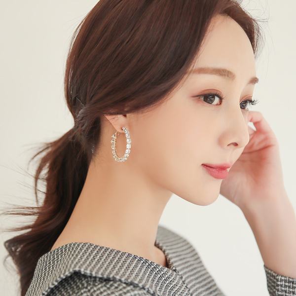 钻石 镶钻 天鹅式 环 耳环