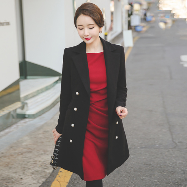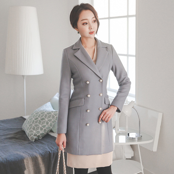 Olivia 双珍珠 修身 羊毛大衣 Ⅱ