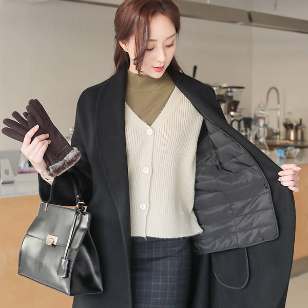 羊毛 披巾领 手工 大衣(衬里可拆卸)