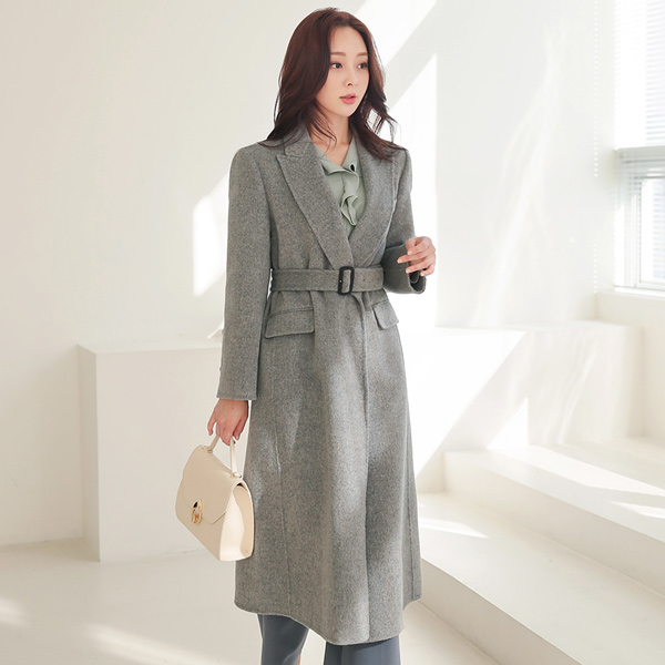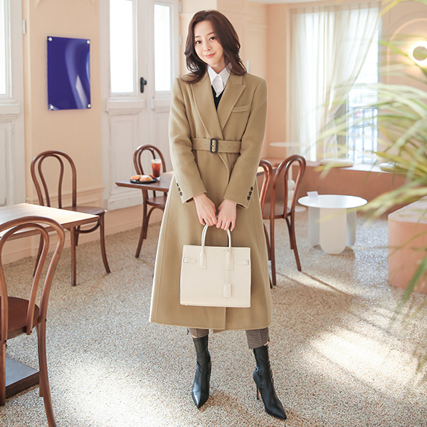 摩登 炫酷 束带 羊毛 手工 长款大衣(누빔안감)