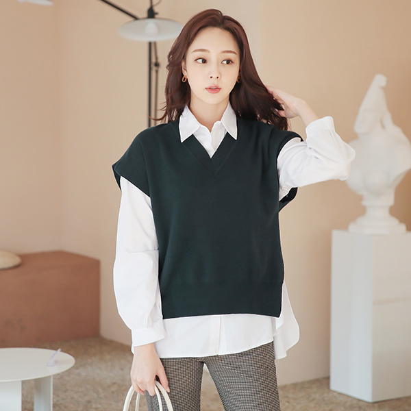侧纽 蝴蝶结 不规则 开衩 V字领 马甲
