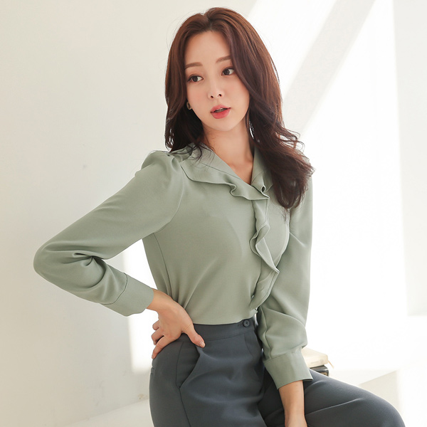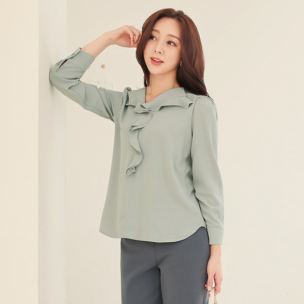 宽松 褶裥 领子 翻毛皮 触摸 罩衫