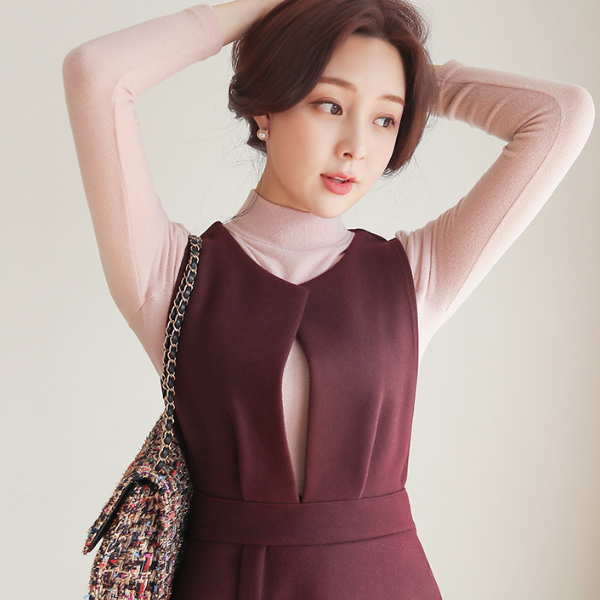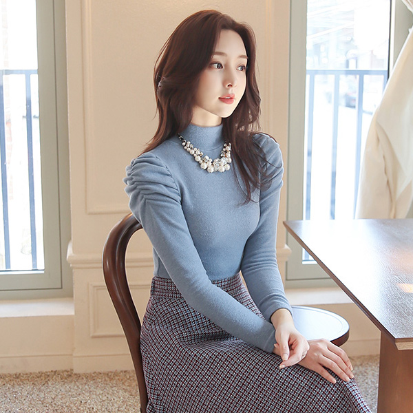 褶皱露肩 柔丝 拉绒 修身 半高领 T恤衫