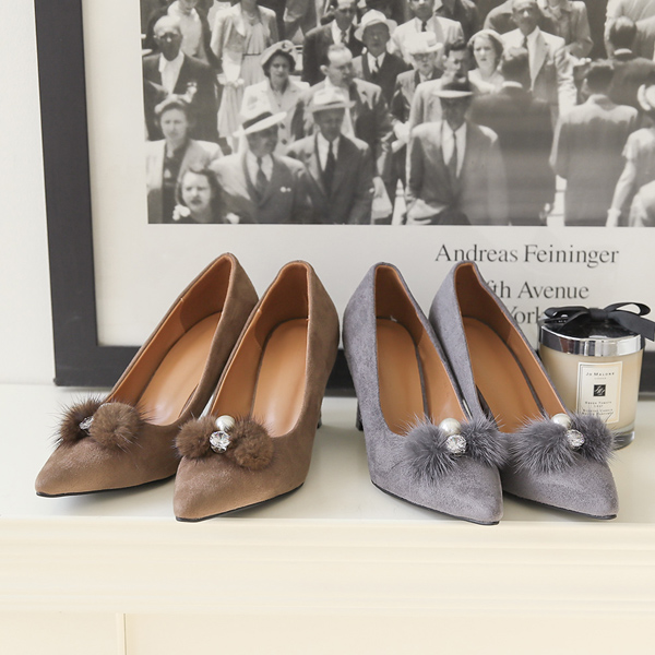 珍珠&镶钻 合作 貂皮毛 尖头高跟鞋