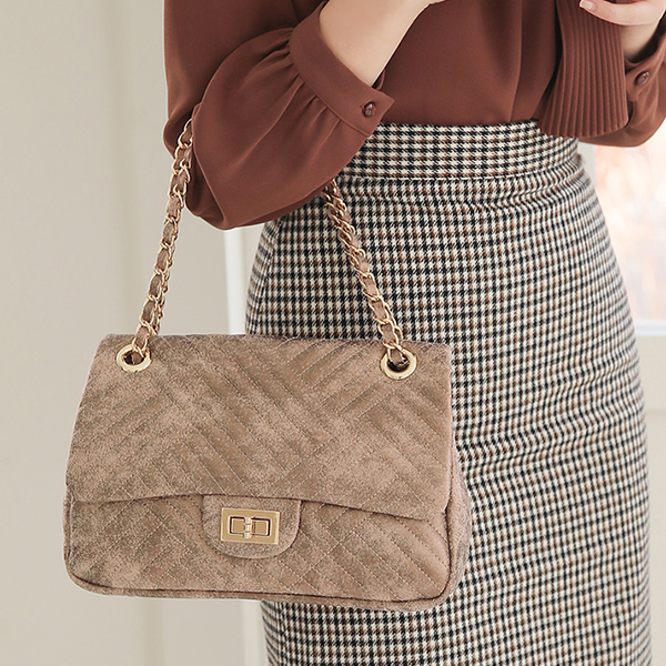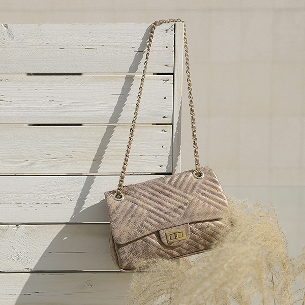 刮 青铜色 绗缝 牛皮 肩包