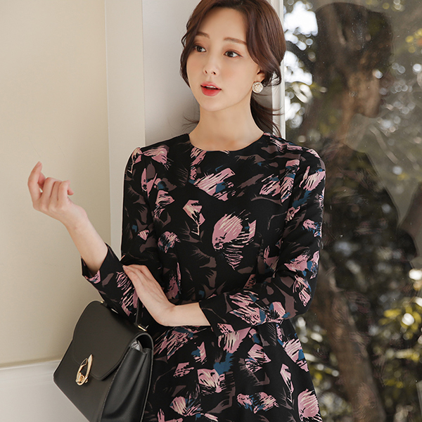 毕加索 绘图 双层细褶 喇叭 连衣裙