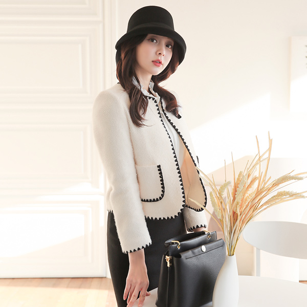 柔丝 밍크터치 刺绣线条 胸针 羊毛夹克