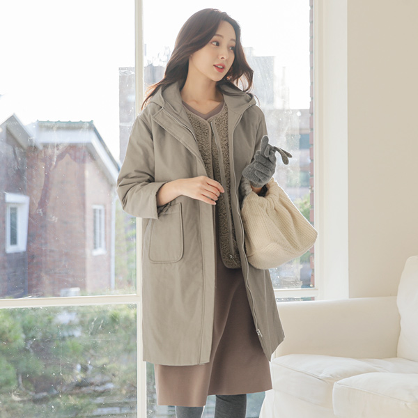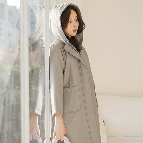 大口袋 覆盖 棉 带帽 长款羽绒服
