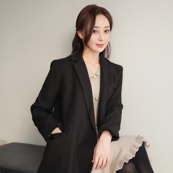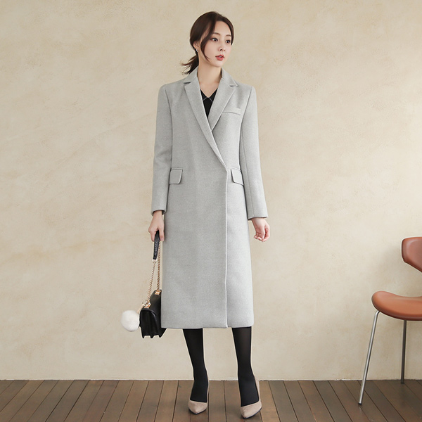 简单 有盖口袋 斜纹羊毛 长款大衣(绗缝里料)