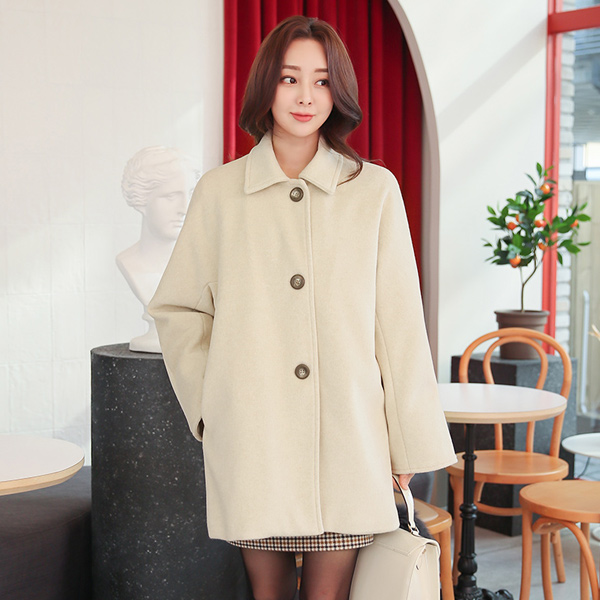 宽松 袖口 大 木纹扣子 单个 羊毛大衣(绗缝里料)