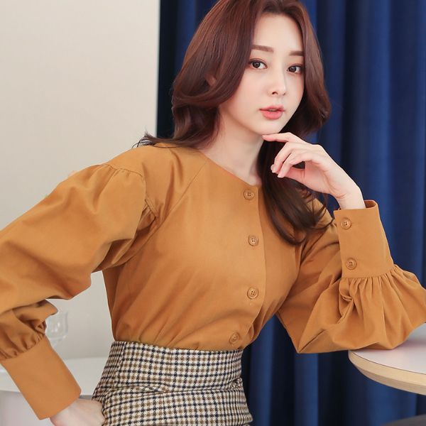 柔丝 桃皮拉绒 棉 灯笼袖 罩衫