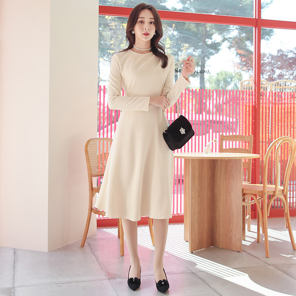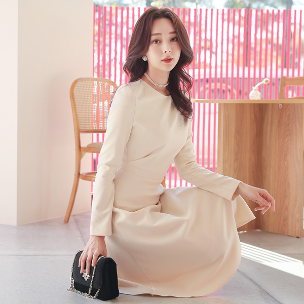 淑女 细褶 褶皱 长款 喇叭 连衣裙