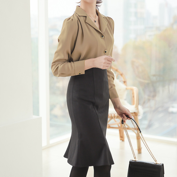 双层领 褶皱露肩 珠宝钮扣 罩衫