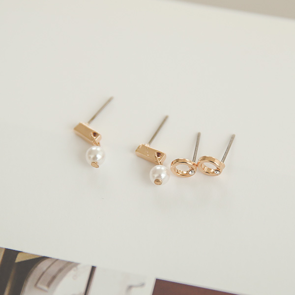 日常 珍珠 镶钻 (套装) 迷你 耳环((6set)