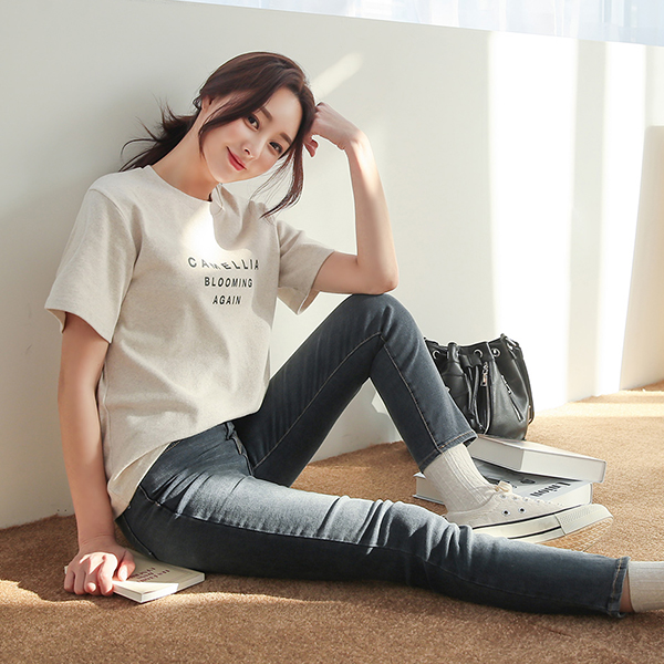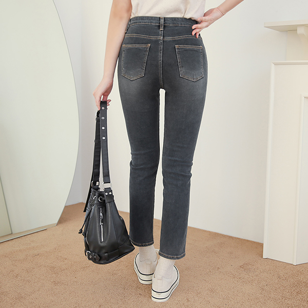 深 水洗 里面松紧带 一字型 牛仔色(衬里加绒)
