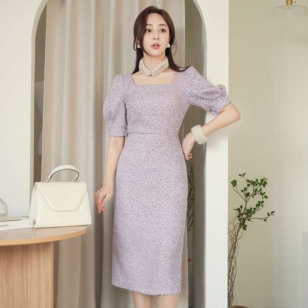 Coco 流苏 方领 泡泡袖 中长连衣裙