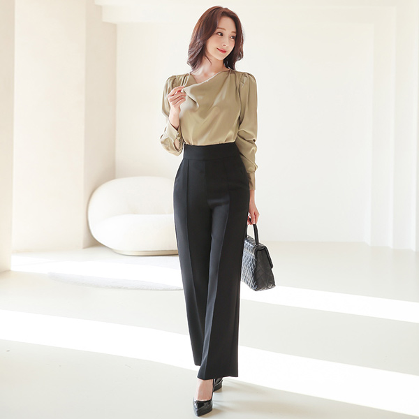 高腰 细褶 宽松 宽松长裤(winter)