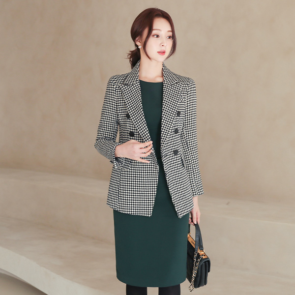 犬牙格子花纹 格子 双排扣 羊毛夹克