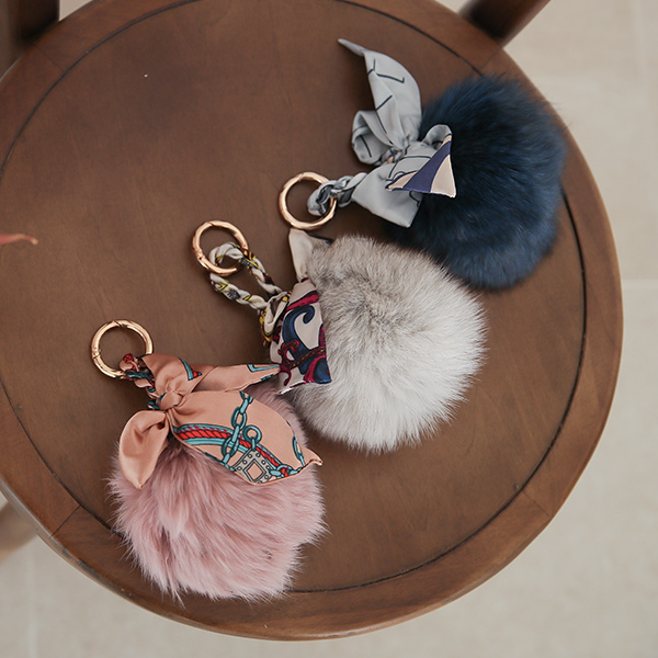 蝴蝶结 围巾 狐狸毛 钥匙链