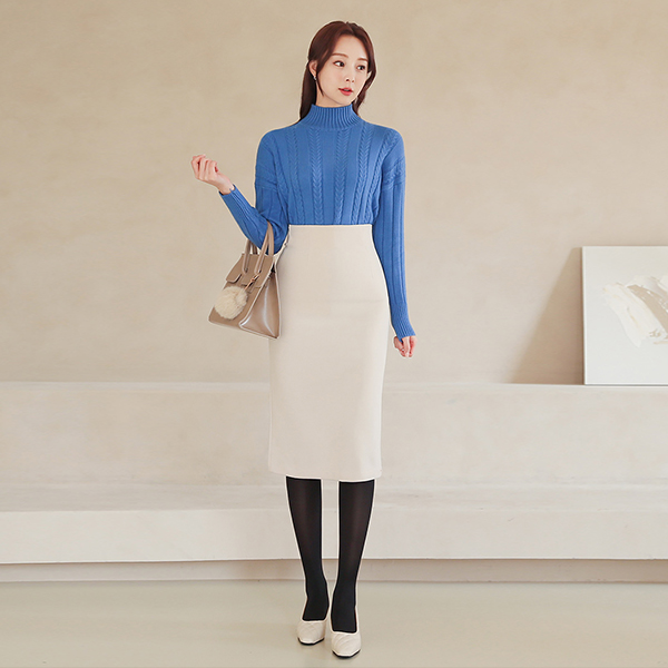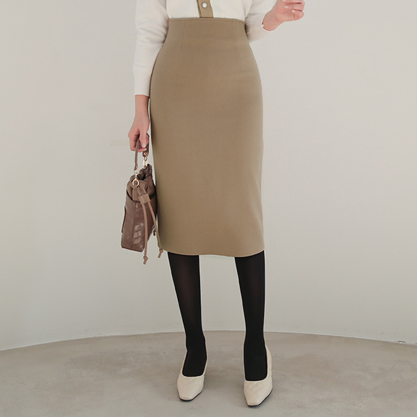 侧线开衩 高腰 弹力 裙子(衬里加绒)
