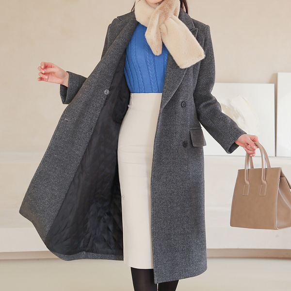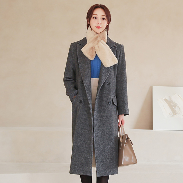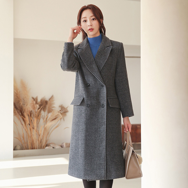 宽领 斜纹羊毛 双排扣 长款大衣